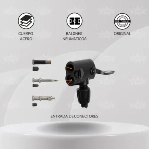 ✅ Compatibilidad universal : Viene con conectores para distintos tipos de válvulas y una aguja metálica para balones, colchones inflables y más. Por otro lado, recuerda que la cabeza dual permite el uso de válvulas europea (Presta), americana (Schrader) y Dunlop.