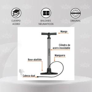 ✅ Agarre ergonómico : Manija de poliuretano diseñada para un agarre cómodo y seguro, facilitando el bombeo sin fatiga.