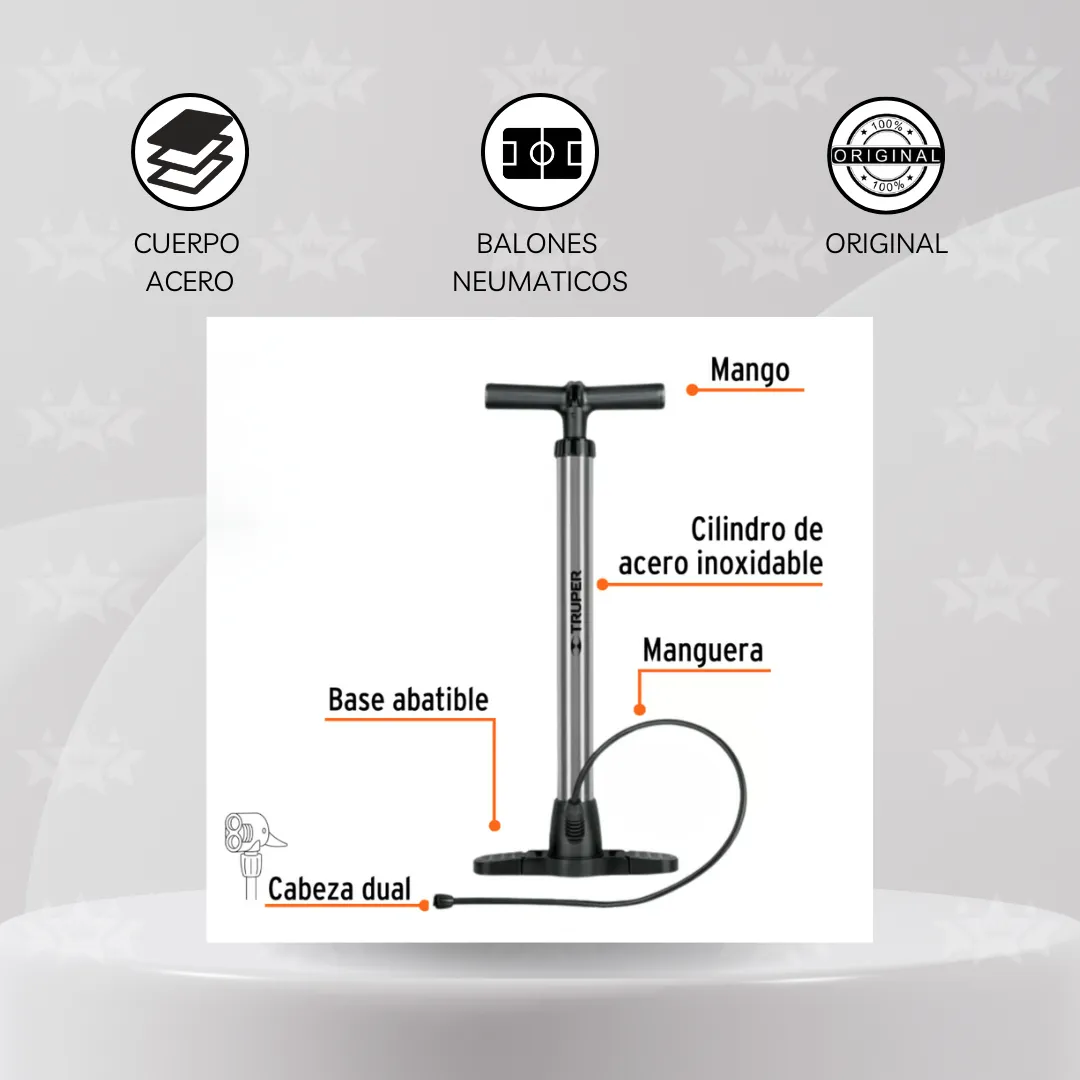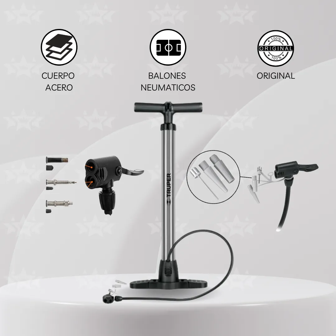 Este inflador TRUPER es la opción ideal para quienes buscan eficiencia, comodidad y durabilidad en un solo producto. 🚲⚽🔧 ¡Consíguelo ahora y mantén siempre tus neumáticos y balones listos! 🔥¡Disponible en Niwde Star, tu mejor aliado del deporte! 🏅⚽✨🏪🛒